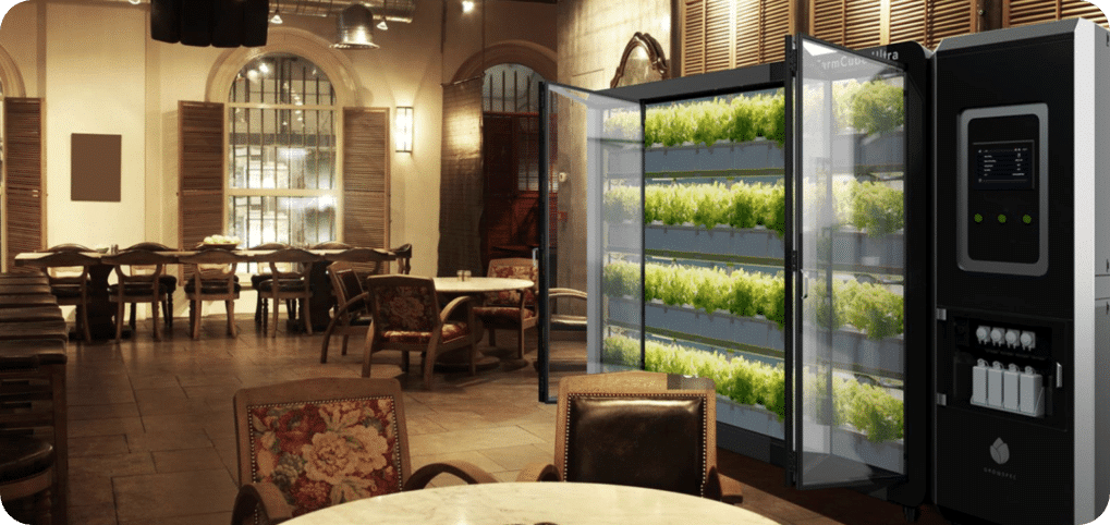 FarmCube Nano – The FarmCube Nano has a 4.0 m2 growing area and up to 128 planting sites (leafy greens), transforming even the smallest environments into productive, high-yield farming zones.