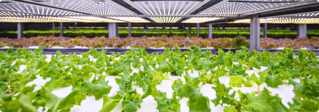 Vertical farming centres around growing crops in stacked layers using advanced aeroponics technology. This is conducted in a controlled environment without soil, which makes it possible to grow crops without concern for weather conditions, pests, climate or soil erosion.