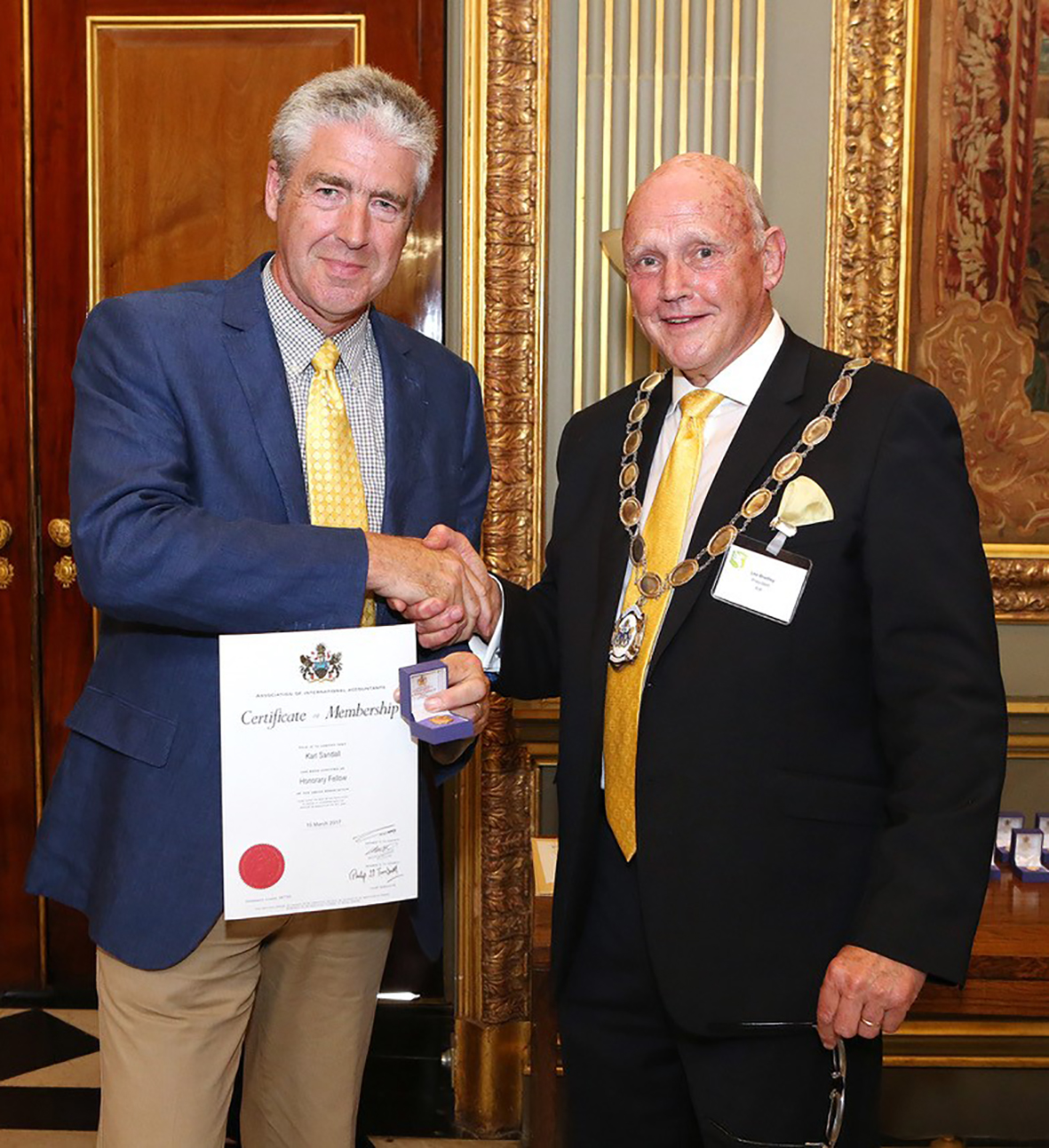 Karl Sandall, Group Chief Executive Director of the TaxAssist Accountants franchise group, has been awarded honorary membership of the Association of International Accountants (AIA) in recognition of his contribution to accountancy and finance. The award ceremony took place at Marlborough House, Pall Mall, London on 26 July 2017.